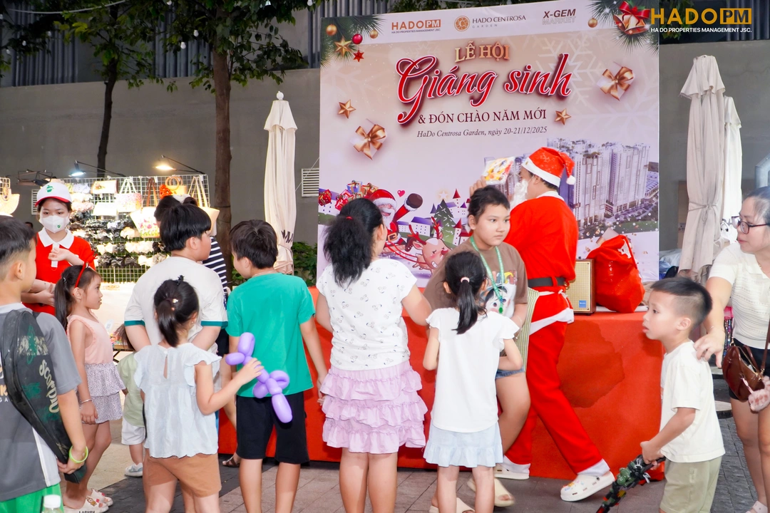 Không dừng lại ở việc trang trí cảnh quan, trong hai ngày 20 – 21/12/2025, Lễ hội Giáng sinh & Chào đón năm mới 2026 tại HaDo Centrosa Garden đã diễn ra trong không khí sôi động và gắn kết, thu hút sự tham gia đông đảo của cộng đồng cư dân.